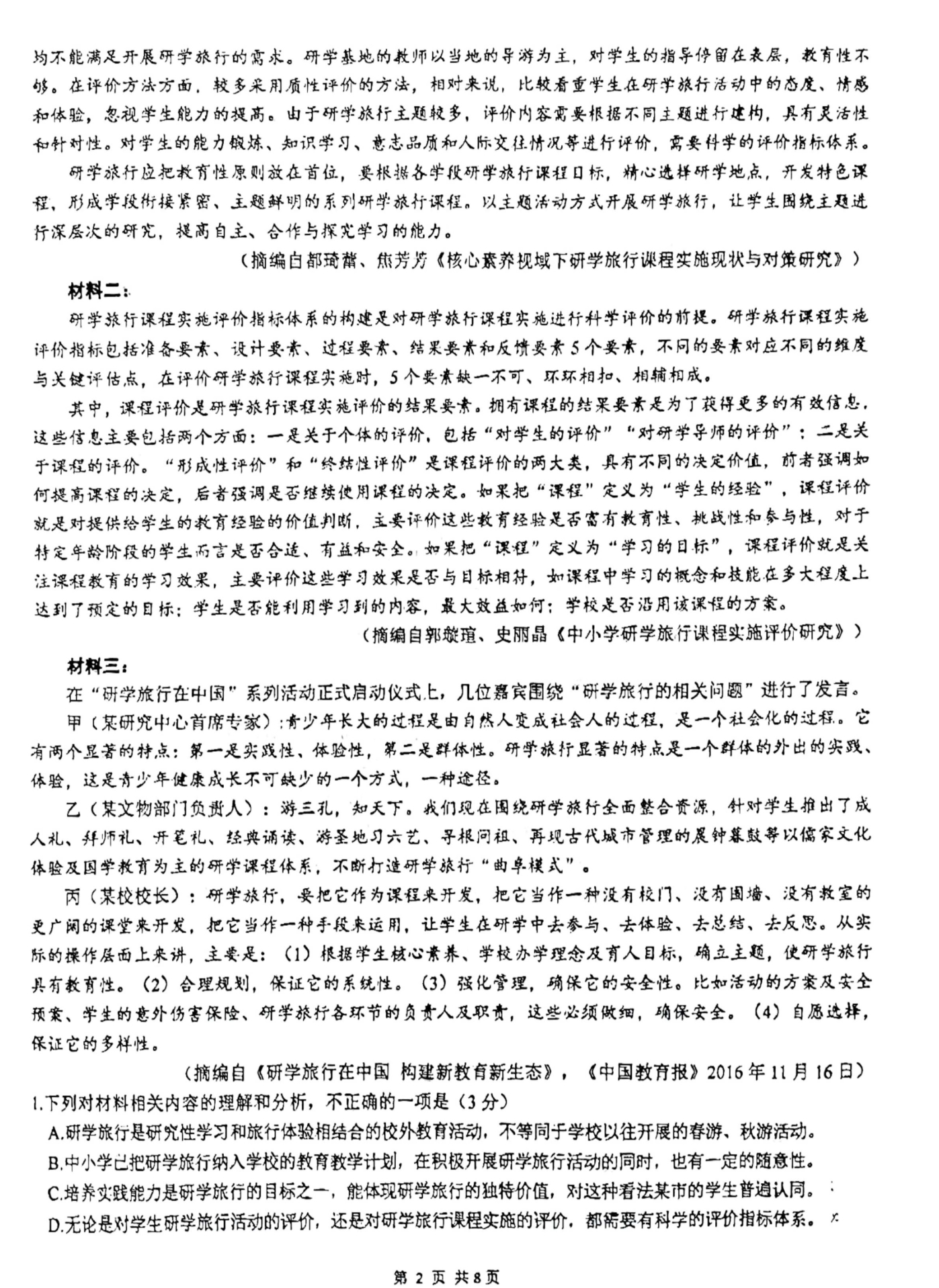 T8联考试题及答案