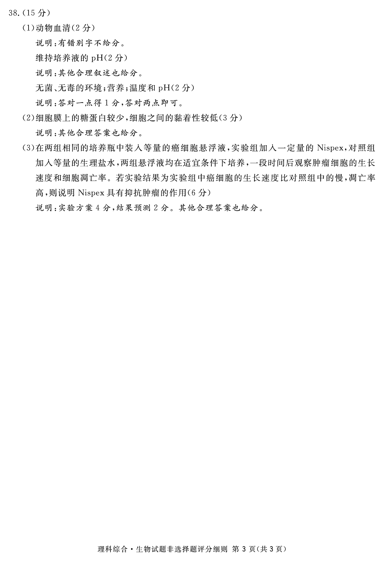 2023年四川九市二诊(第二次诊断性考试)理综答案