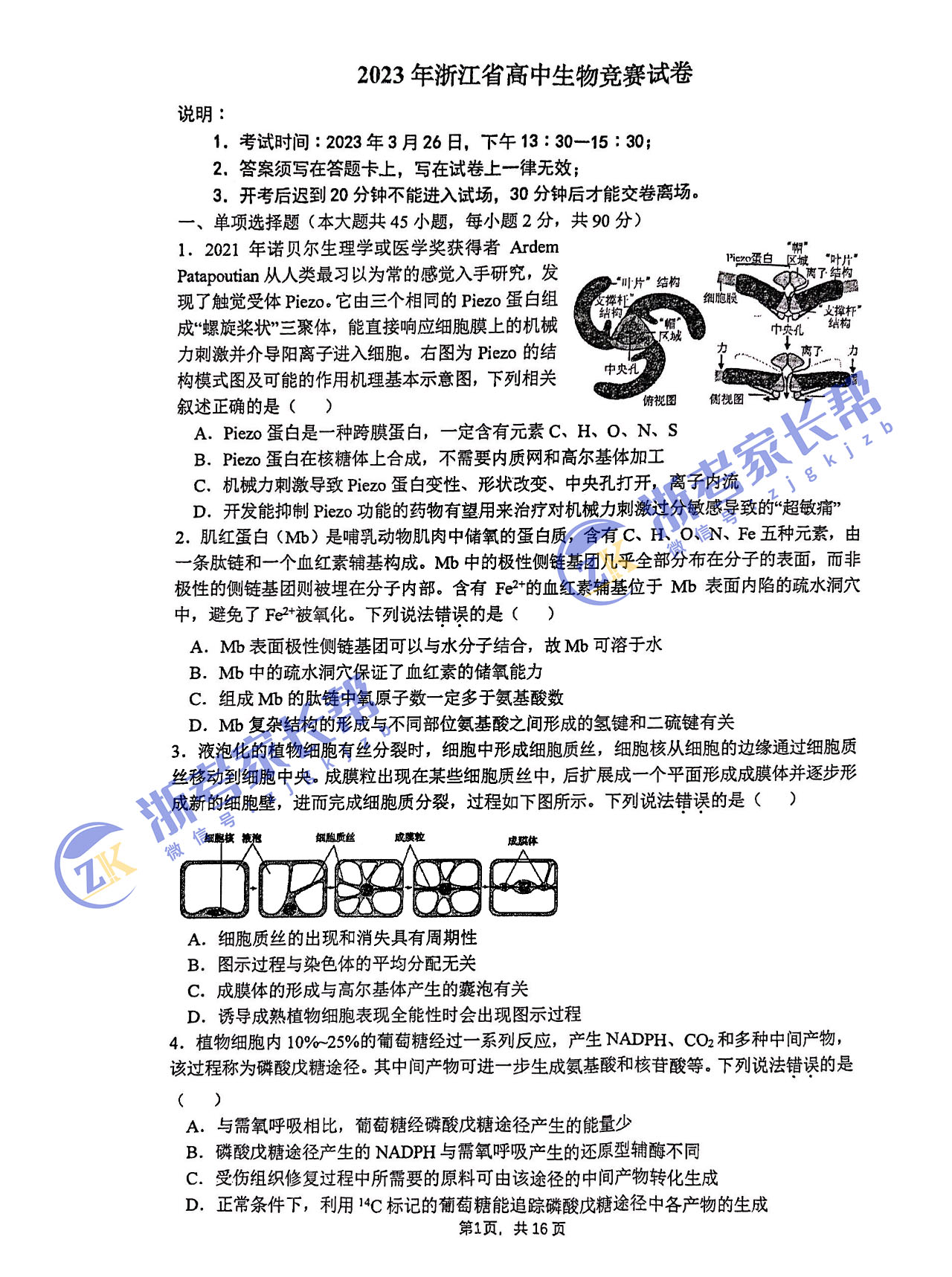 2023浙江生物竞赛初赛试卷出炉