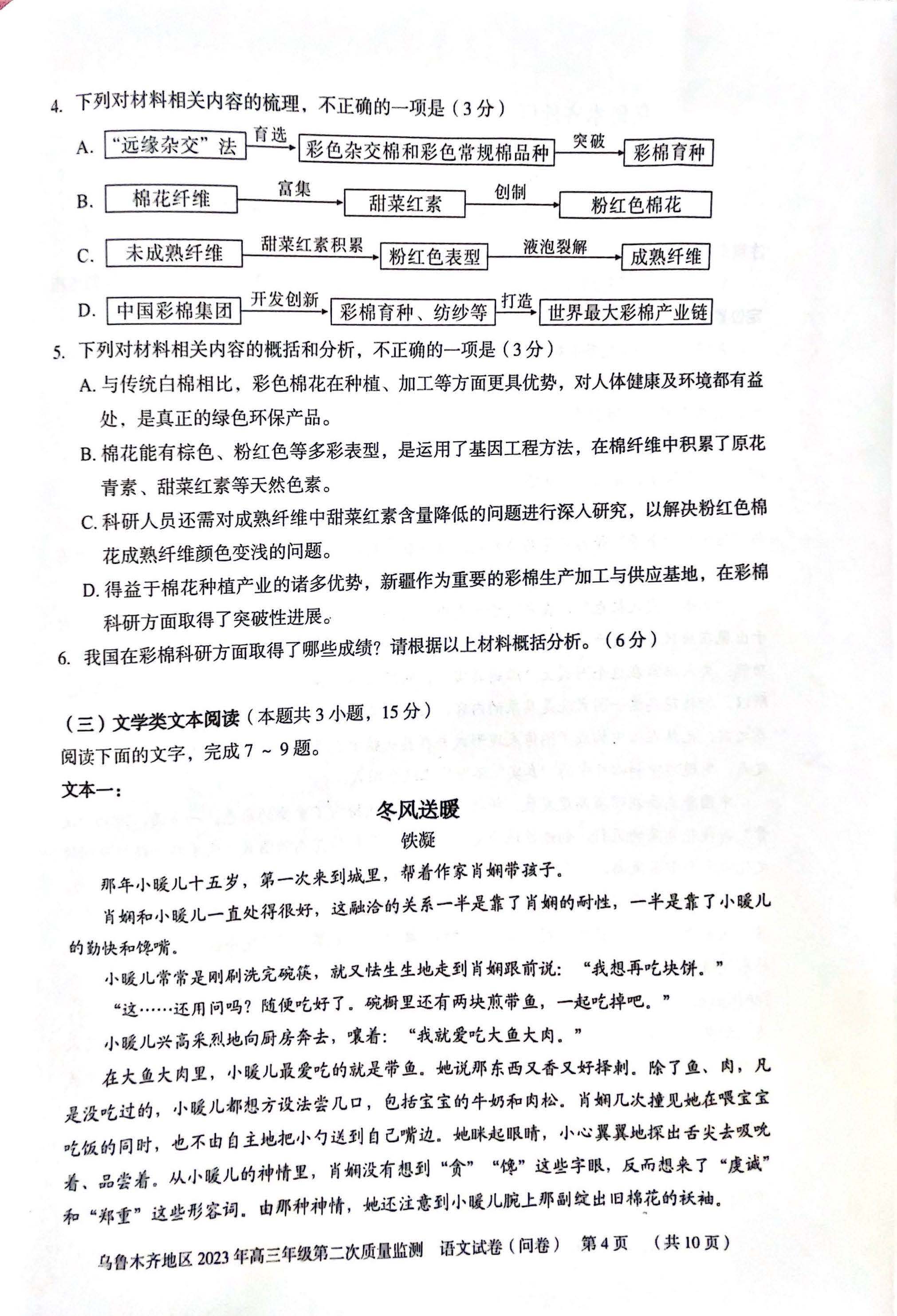 新疆乌鲁木齐地区2023届高三二模语文试题