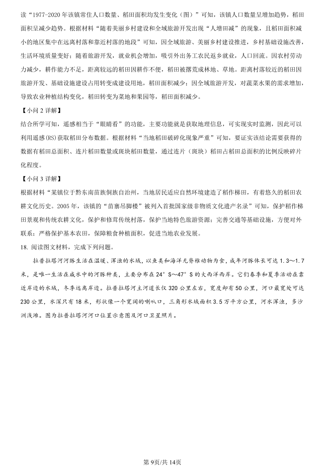 2023年湖南省常德市高三年级模拟考试(常德二模)地理试题答案