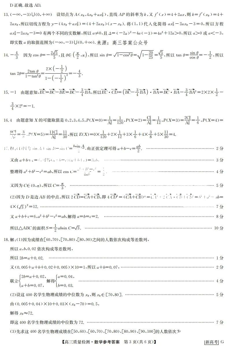 九师联盟2023届高三3月质量检测巩固卷(新高考卷)数学答案