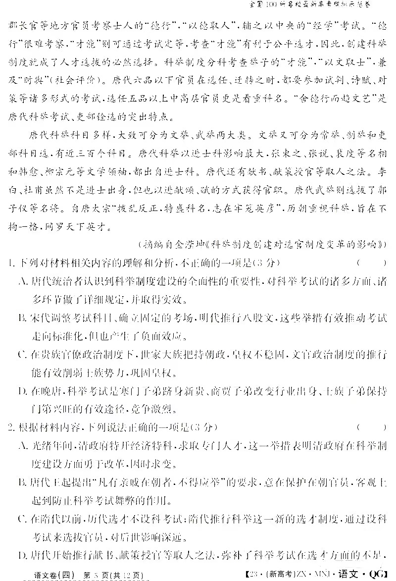 2023届全国100所名校最新高考模拟示范卷四于近日开考,为方便大家下载学习,自主选拔在线团队特整理了2023届全国100所名校最新高考模拟示范卷四语文试题,供大家参考!