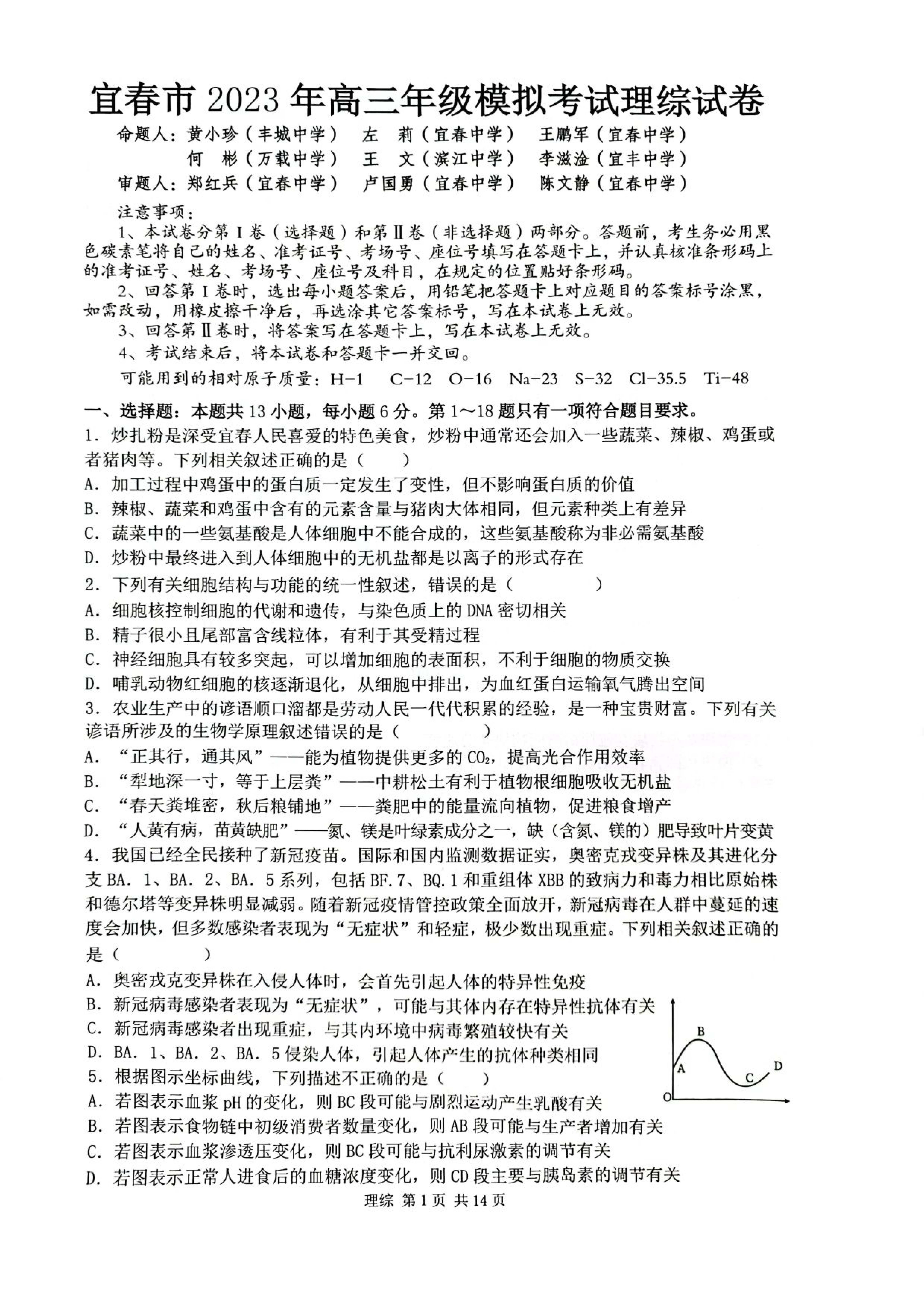 江西省宜春市2023届高三二模于近期开考,为方便大家巩固练习,自主选拔在线团队同步整理2023江西宜春高三二模相关试题及参考答案,供大家下载。