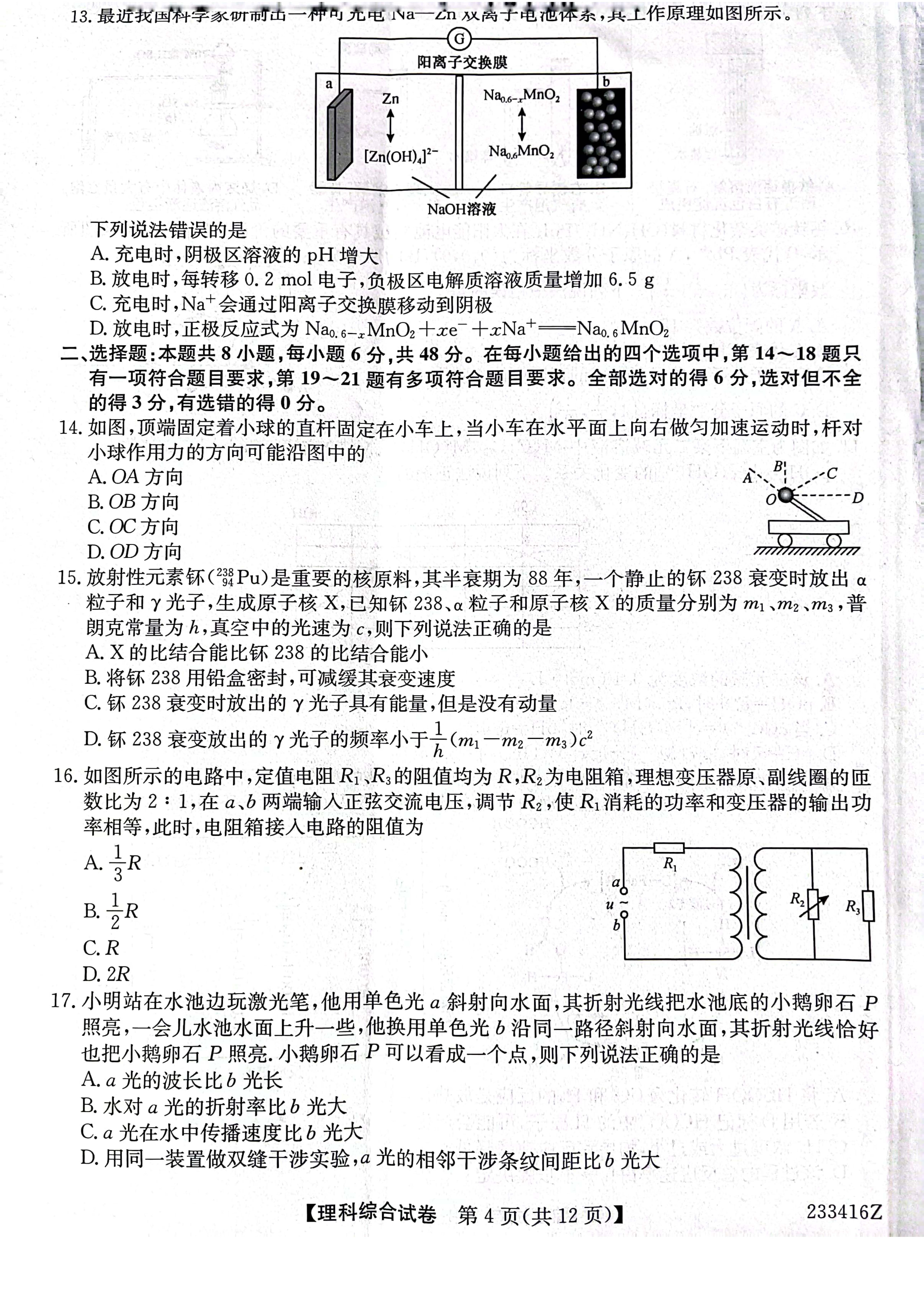 黑龙江省齐齐哈尔市2023届高三二模理综试题