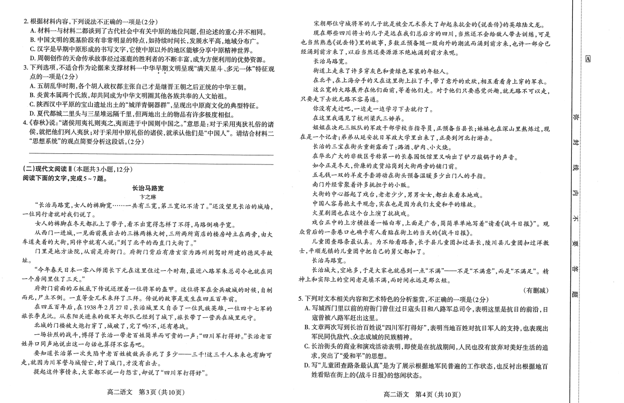 山西省太原市2023届高二下期中考试语文试题