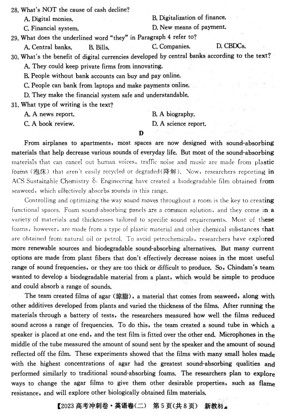 2023年普通高校招生考试冲刺压轴卷二英语试题