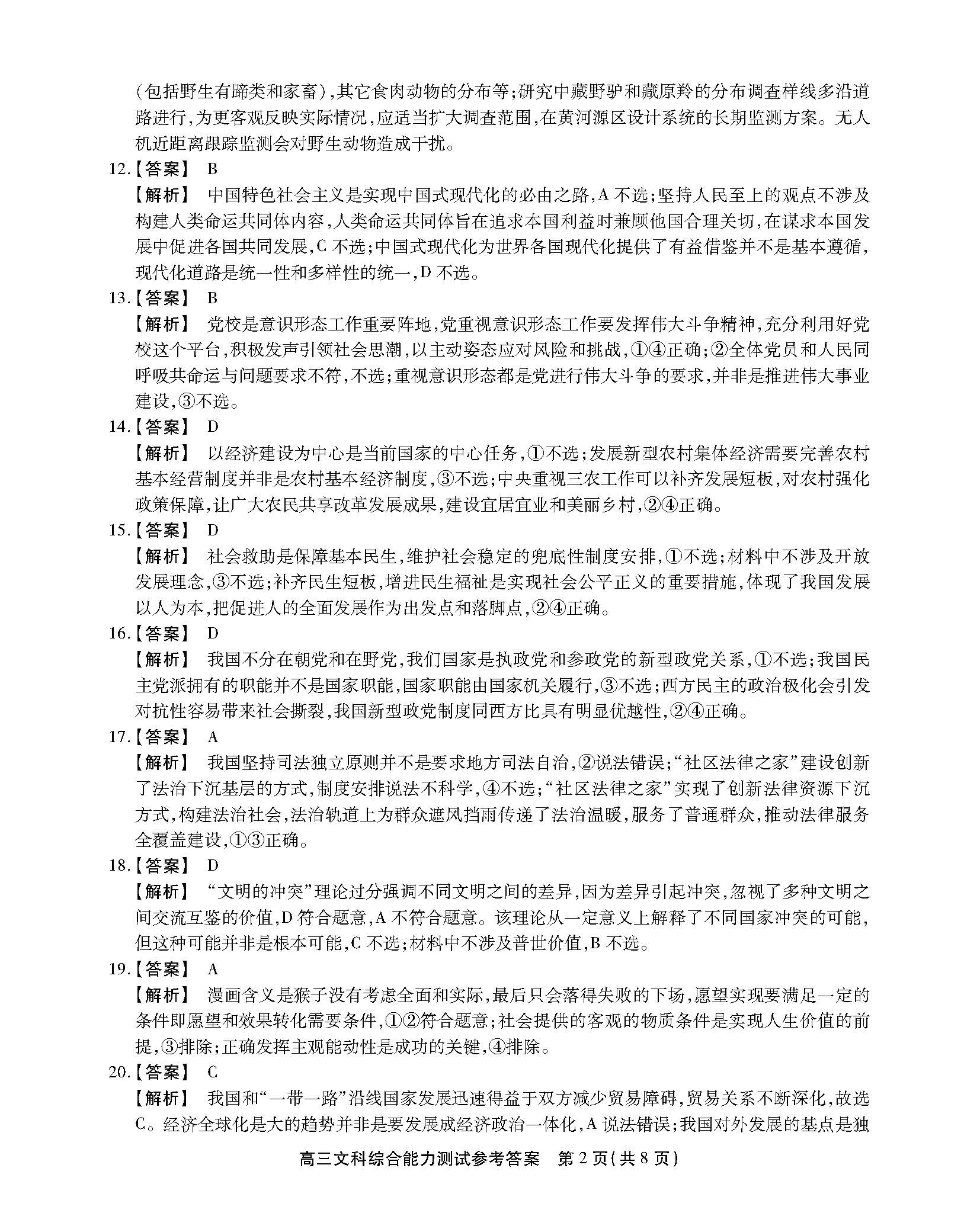 安徽鼎尖名校2023届高三预测性联考文科综合答案