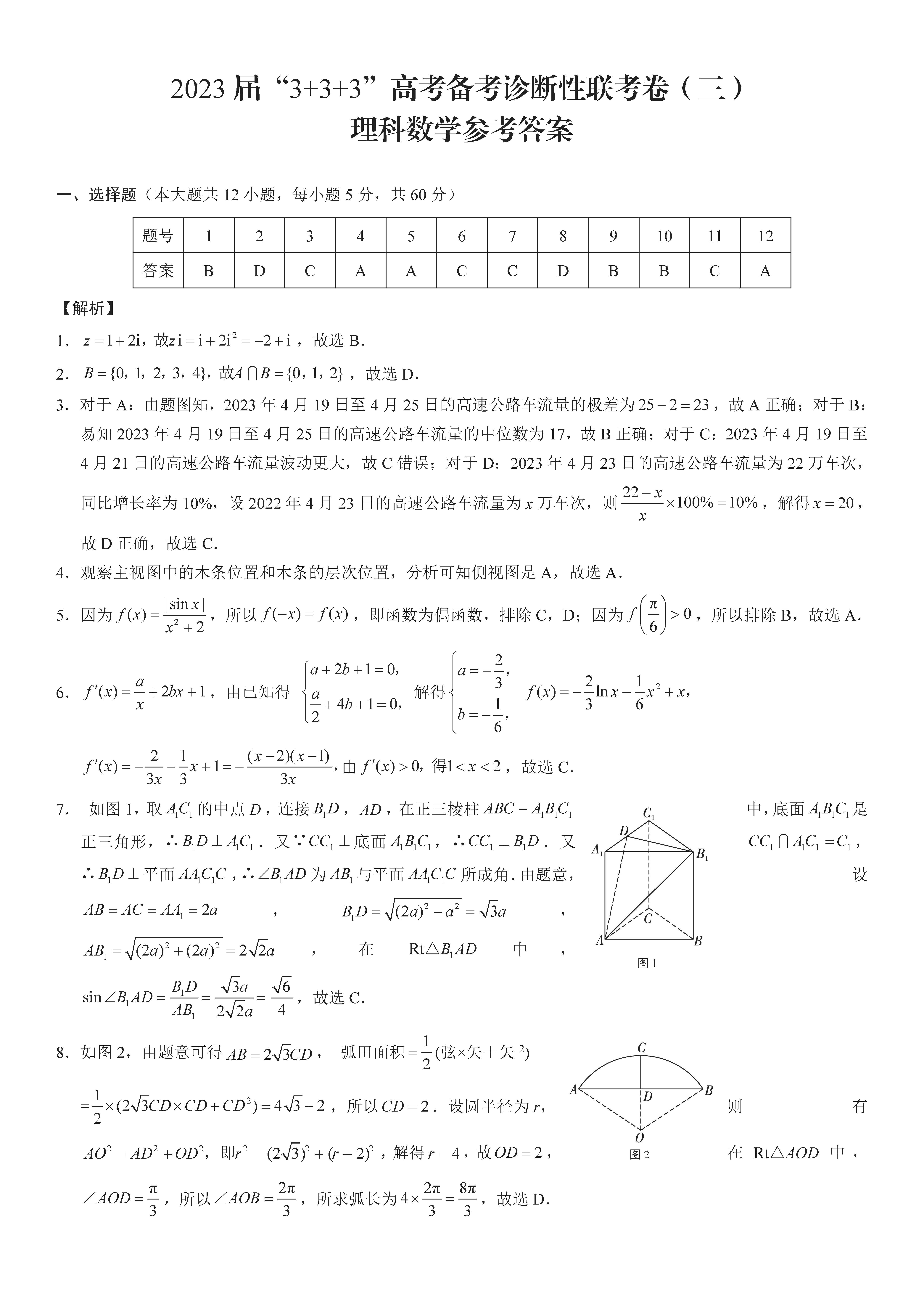 2023届贵州省贵阳市3+3+3高考备考诊断性联考(三)理科数学答案
