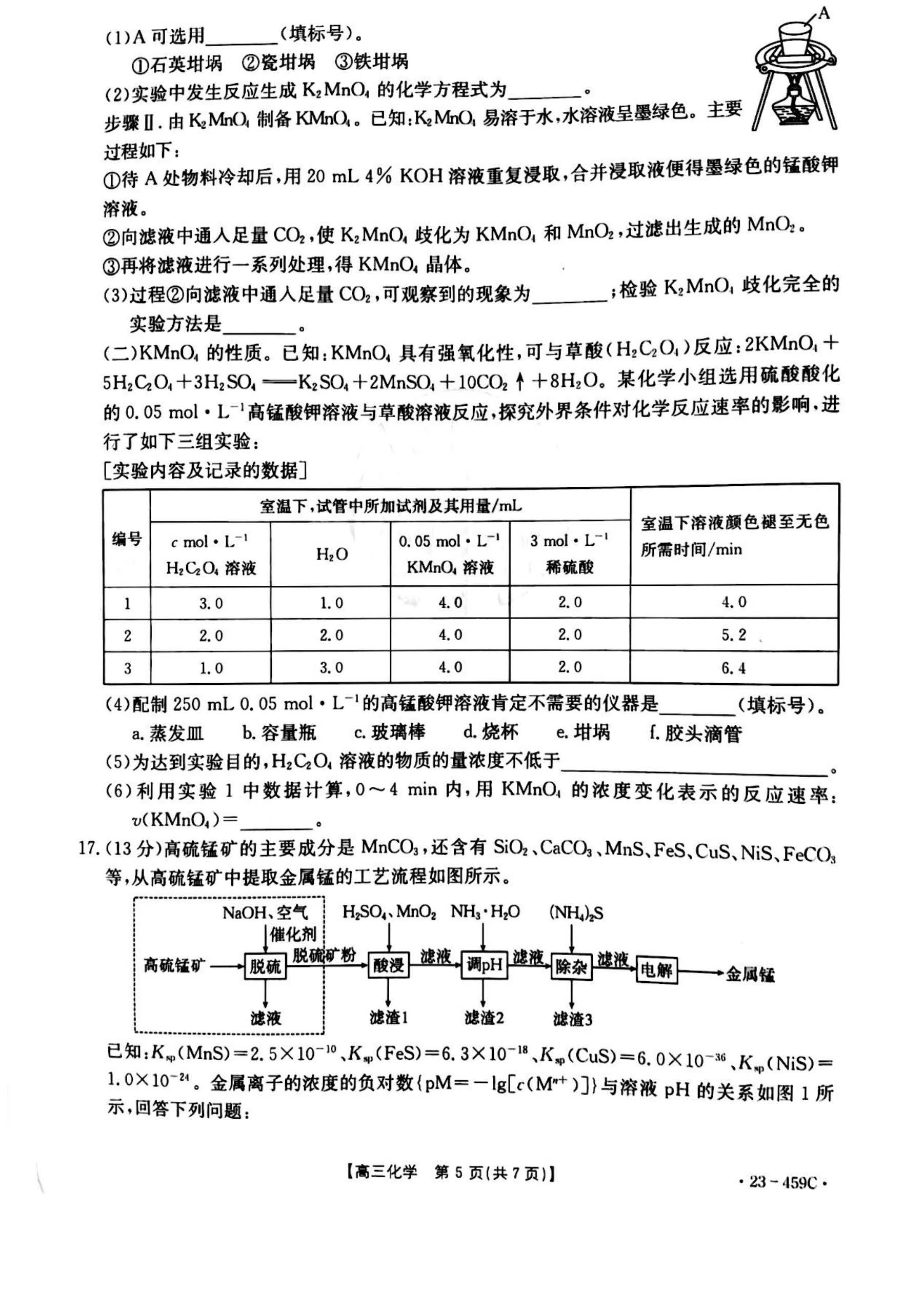 辽宁抚顺六校协作体2023届高三二模(金太阳459C)化学试题
