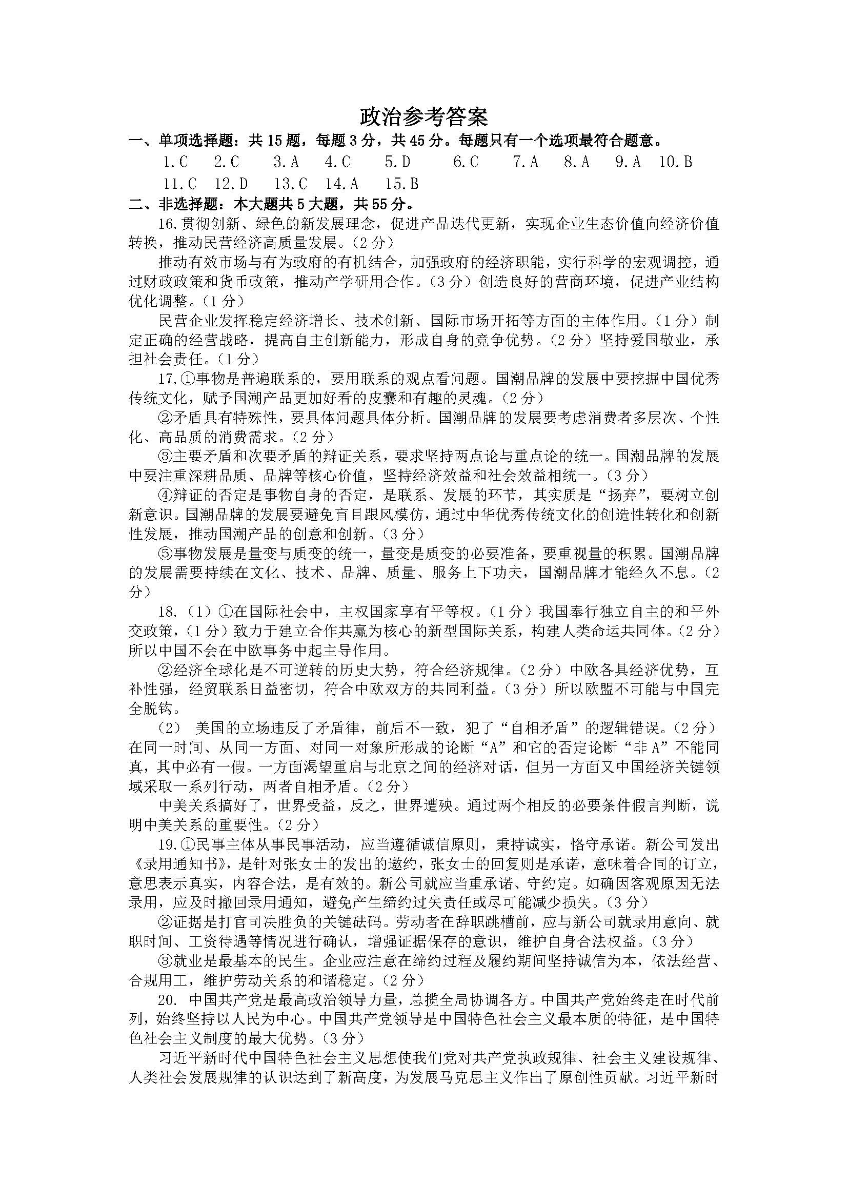 江苏省南通市如皋市2023届高三适应性三(3.5模)政治答案