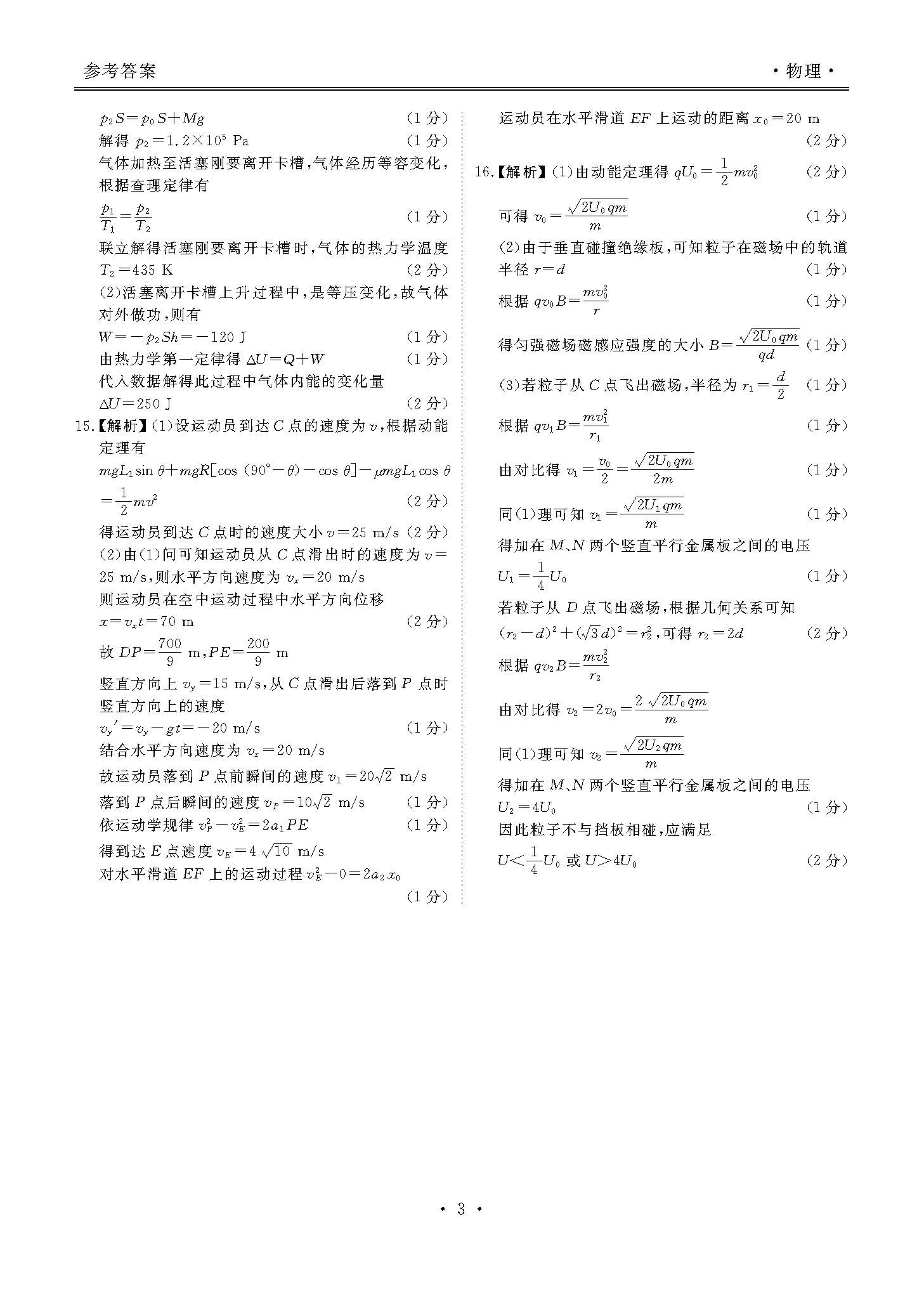 立即下载:湖南省郴州市九校联盟2023届高三适应性测试物理答案