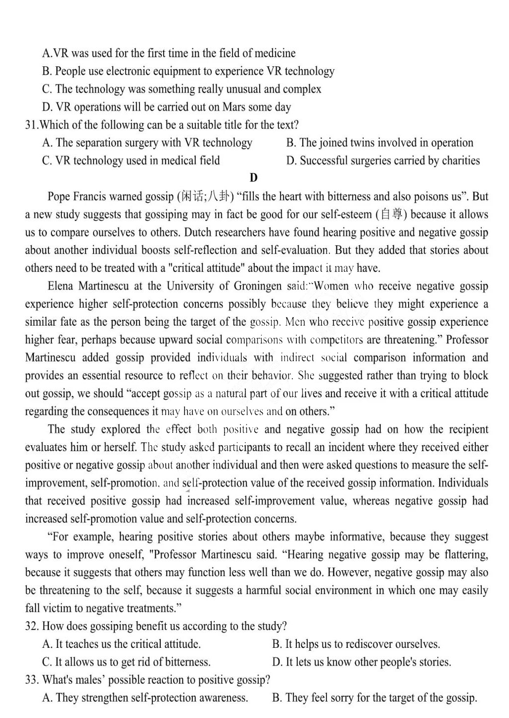 哈九中2023届高三第四次高考模拟英语试题