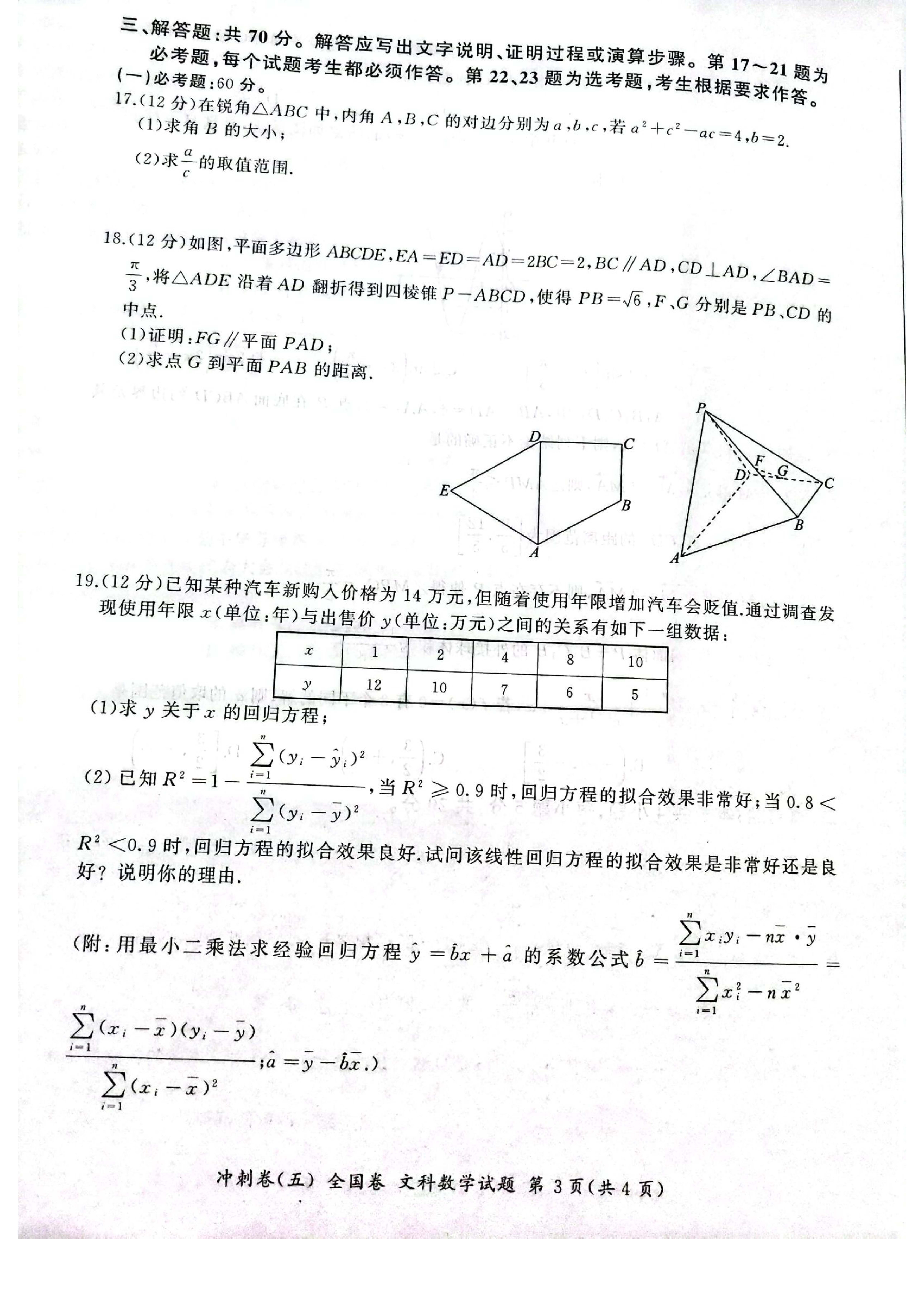 百师联盟2023届高三冲刺卷五(全国卷)文数试题