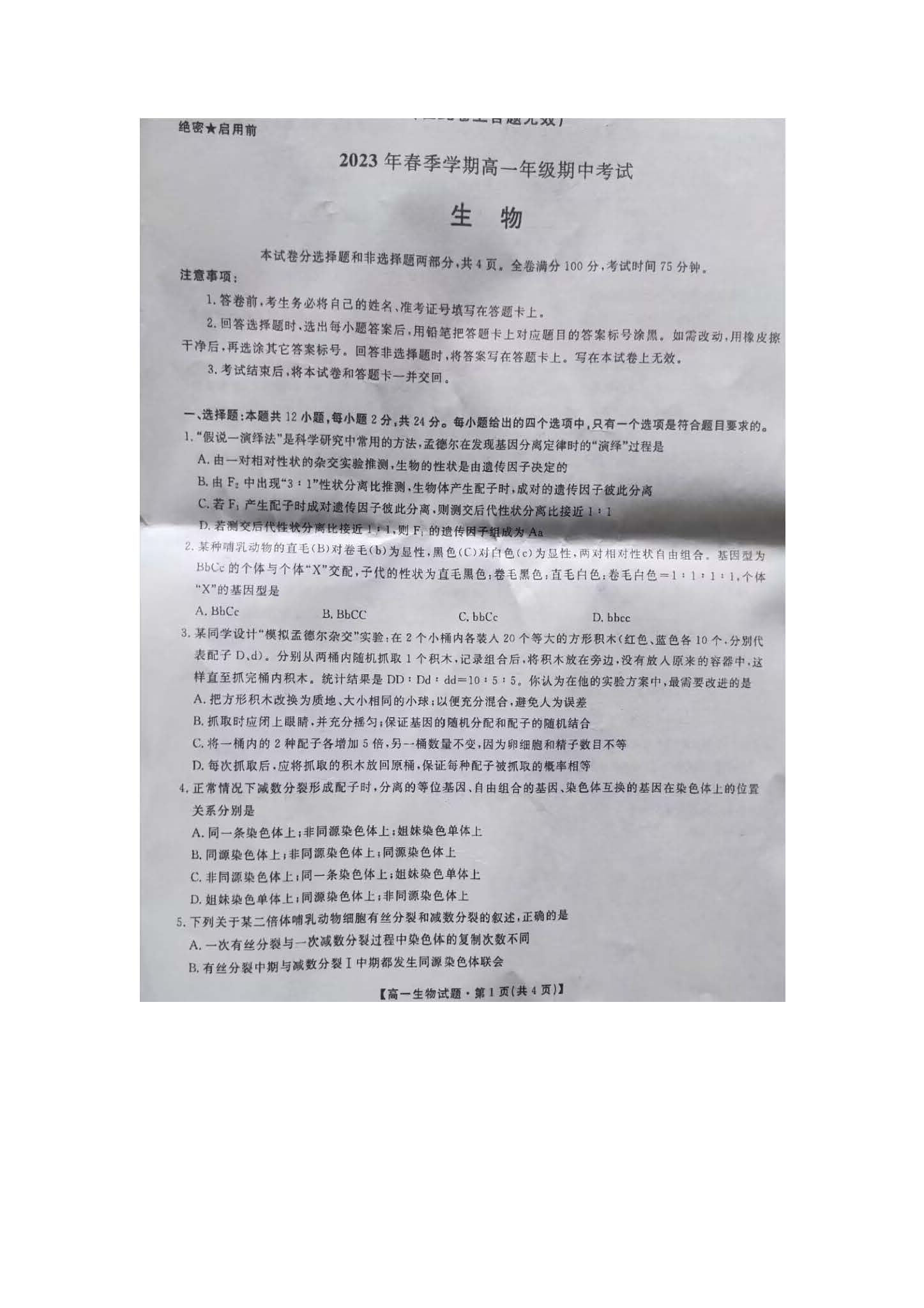 立即下载:安徽合肥百花中学等六校2023学年高一下期中生物试题