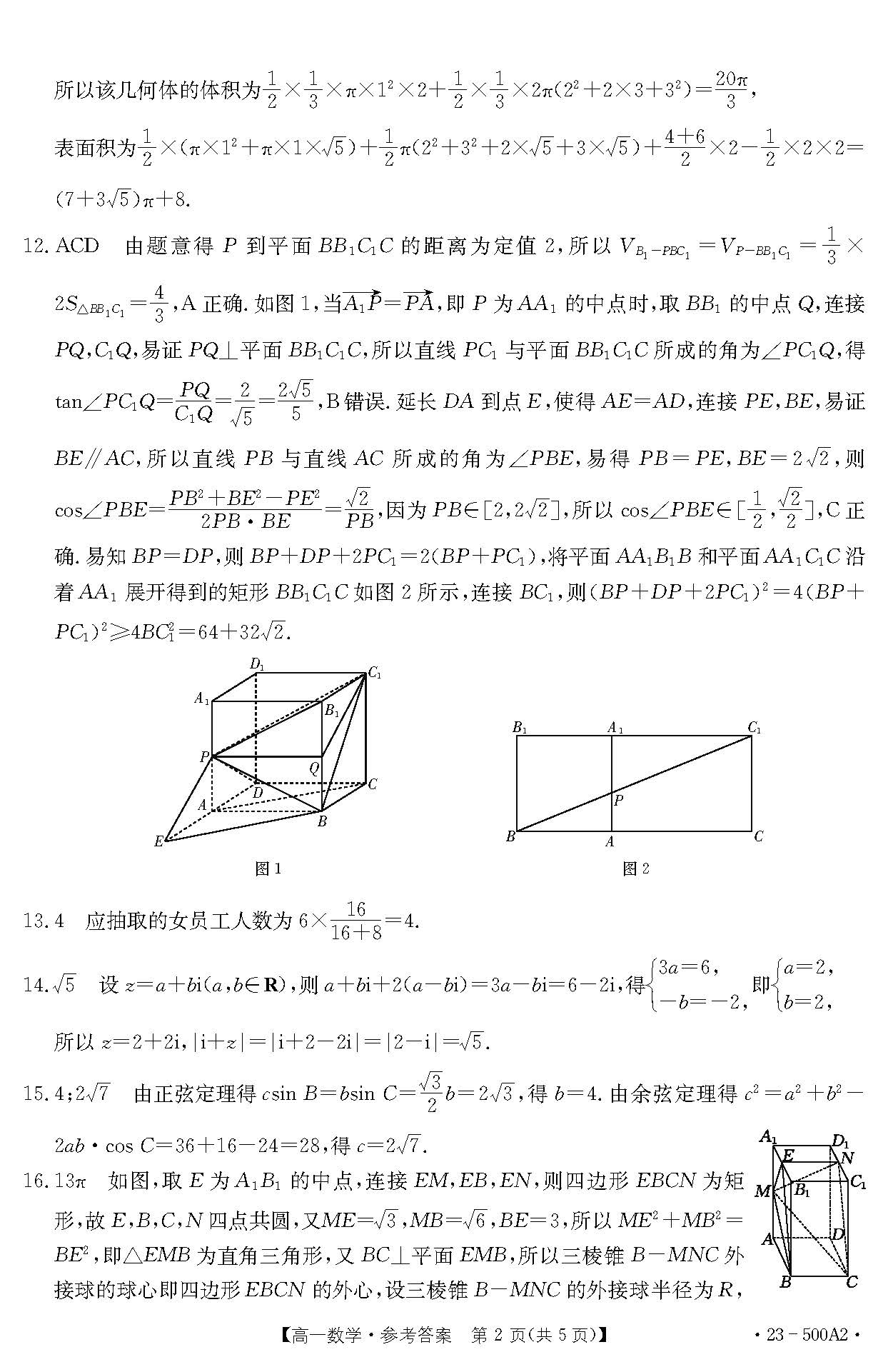 河南省部分重点中学2023学年高一下第三次联考数学答案
