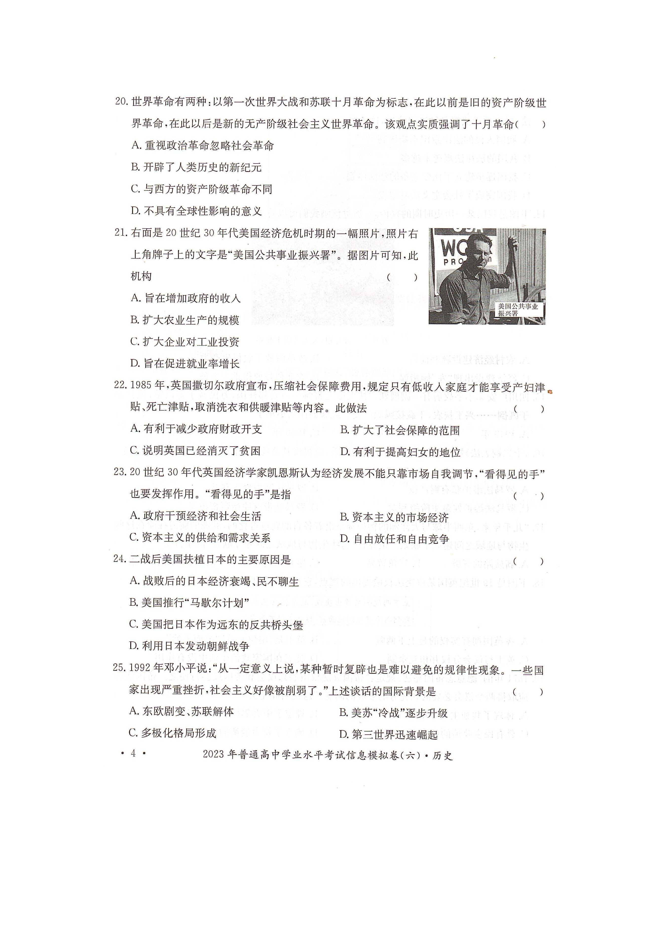 湖南省2023年普通高中学业水平考试信息模拟卷(六)历史试题