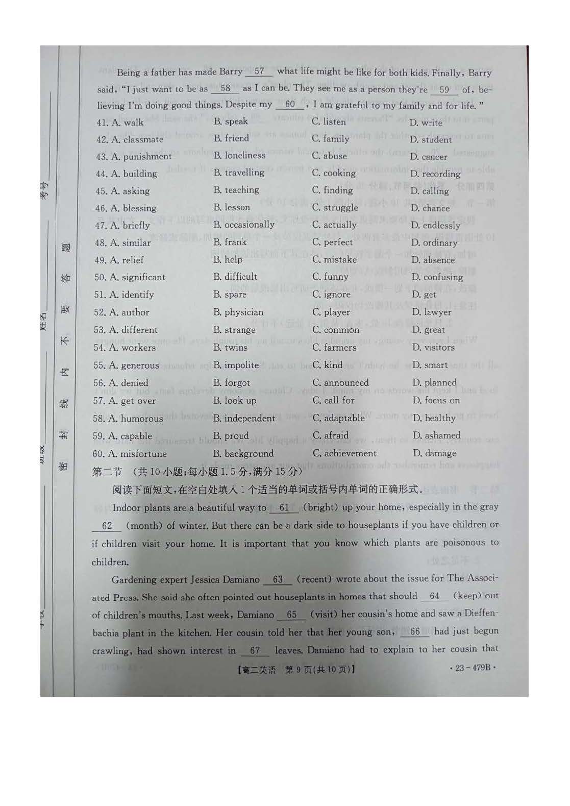 金太阳陕西省安康市2023学年高二下期末(479B)英语试题