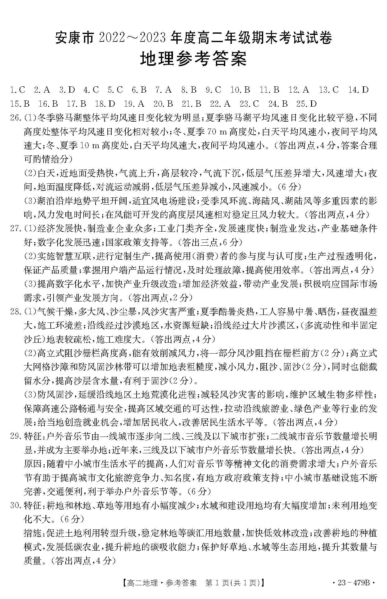 金太阳陕西省安康市2023学年高二下期末(479B)地理答案