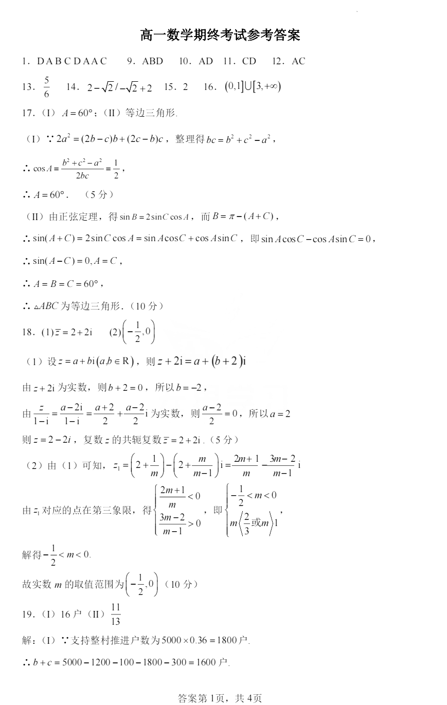 陕西师大附中2022-2023学年高一下学期期末数学答案