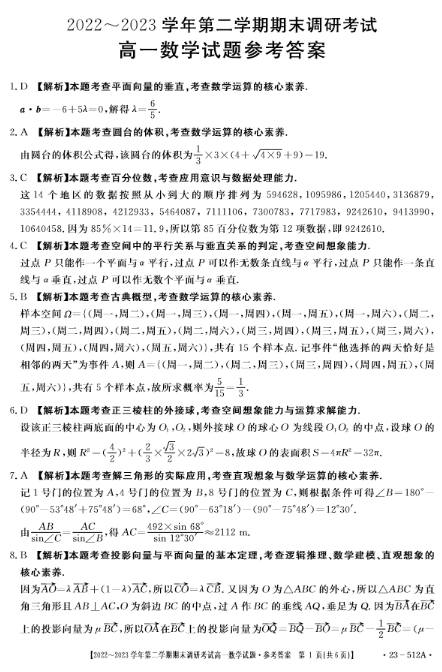 河北省2023年高一期末考试顺利结束!自主选拔在线团队同步整理了河北省2023年高一下学期期末考试数学试题答案,供大家下载!
