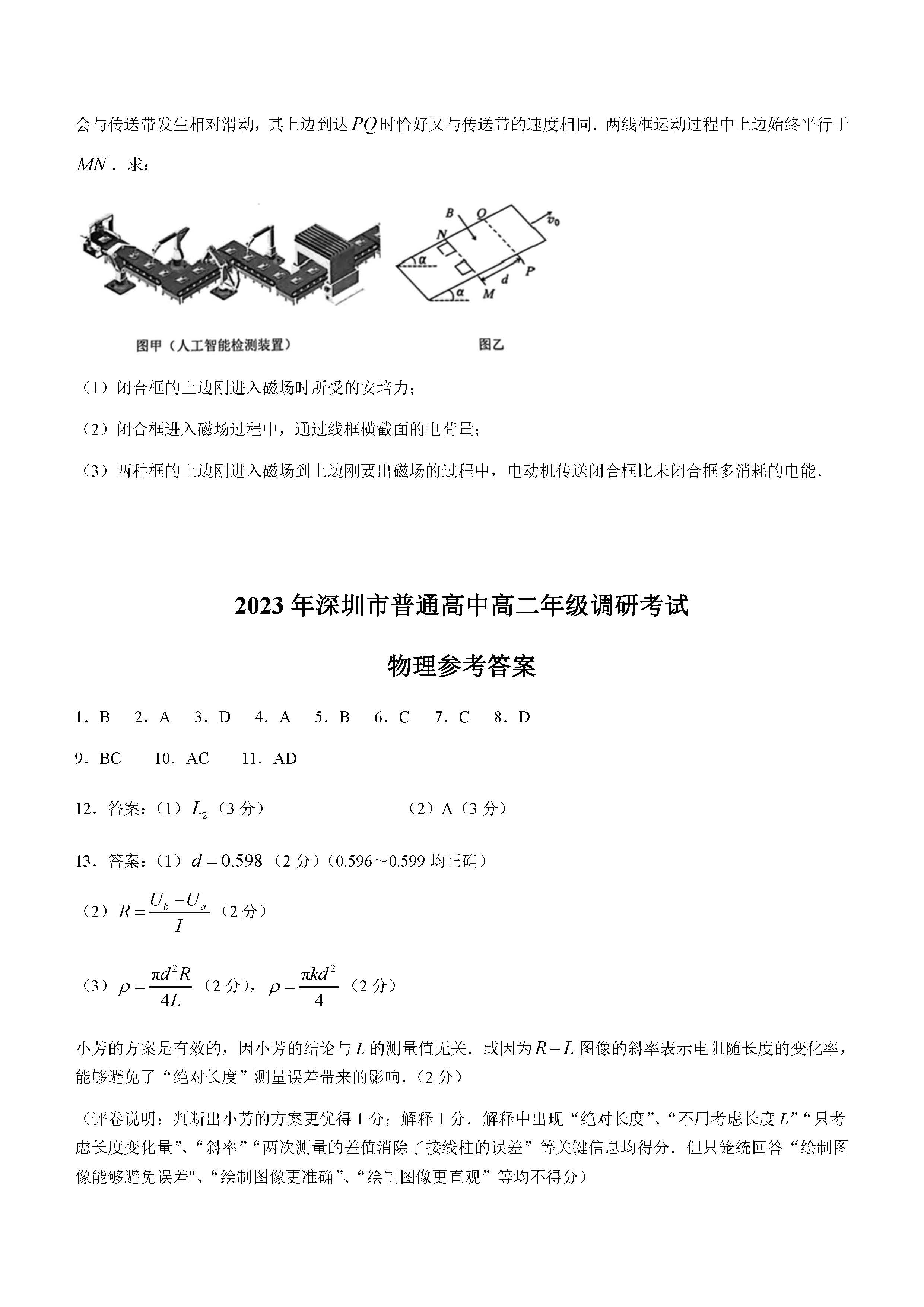 广东省深圳市2023学年高二下学期期末物理答案