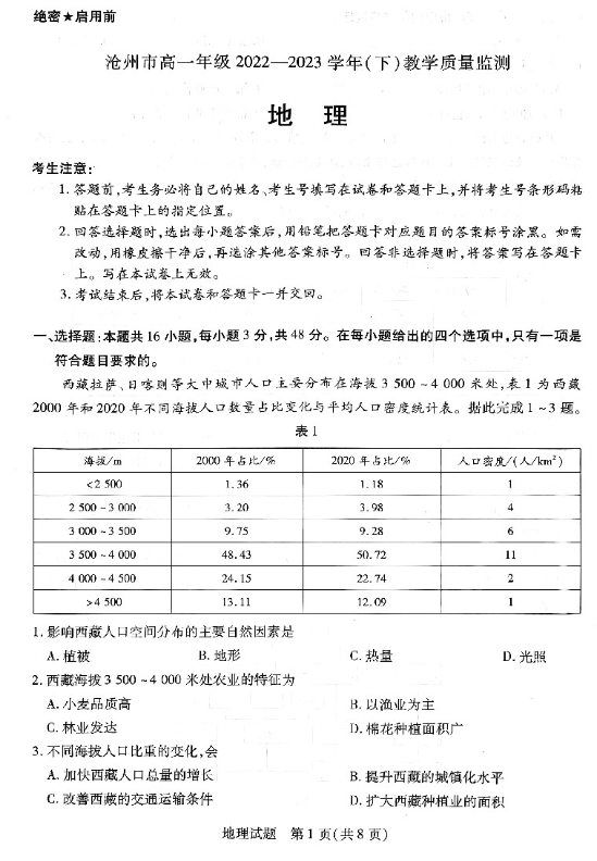 河北省沧州市2023年高一期末考试顺利结束!自主选拔在线团队同步整理了河北省沧州市2023年高一下学期期末考试地理试题,供大家下载!