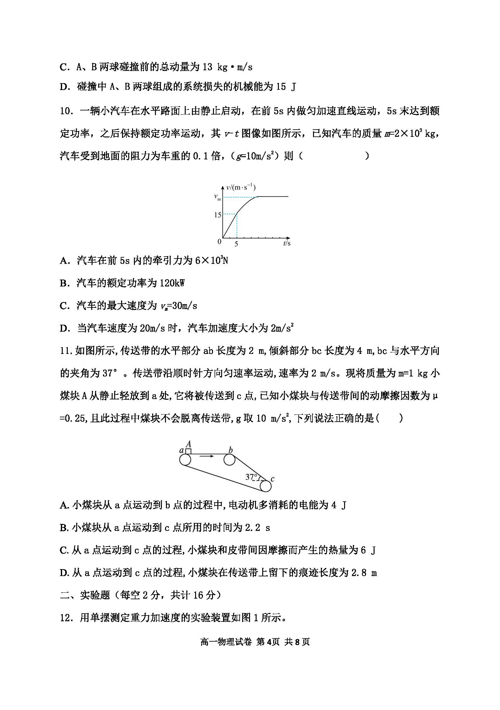 湖北省武汉市常青联合体2023学年高一第二学期期末物理试题