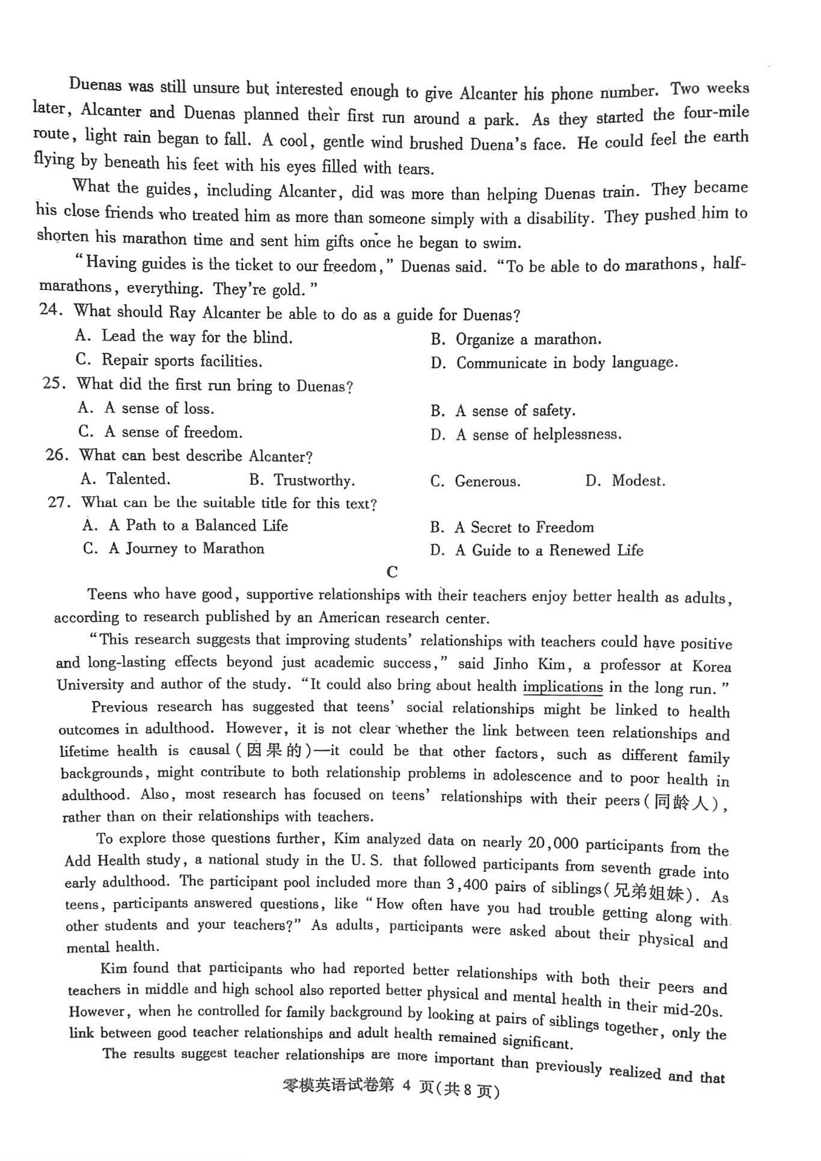四川省内江市高中2024届零模已开考,本次考试具有非常高的参考价值,为方便大家下载学习,自主选拔在线四川新高考团队为大家整理了四川省内江市高中2024届零模英语试题及答案,供大家参考!