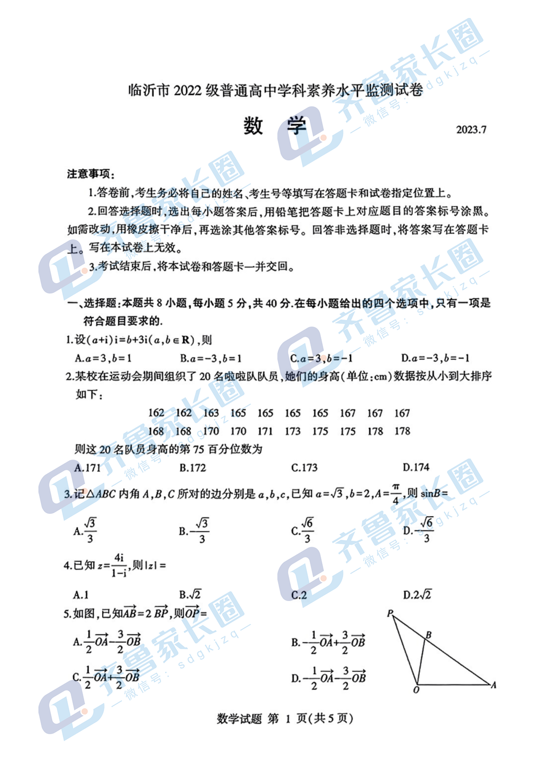 其他获取试题渠道:微信搜索齐鲁家长圈,关注齐鲁家长圈(微信公众号:sdgkjzq),回复【临沂高一期末】获取试题和答案。