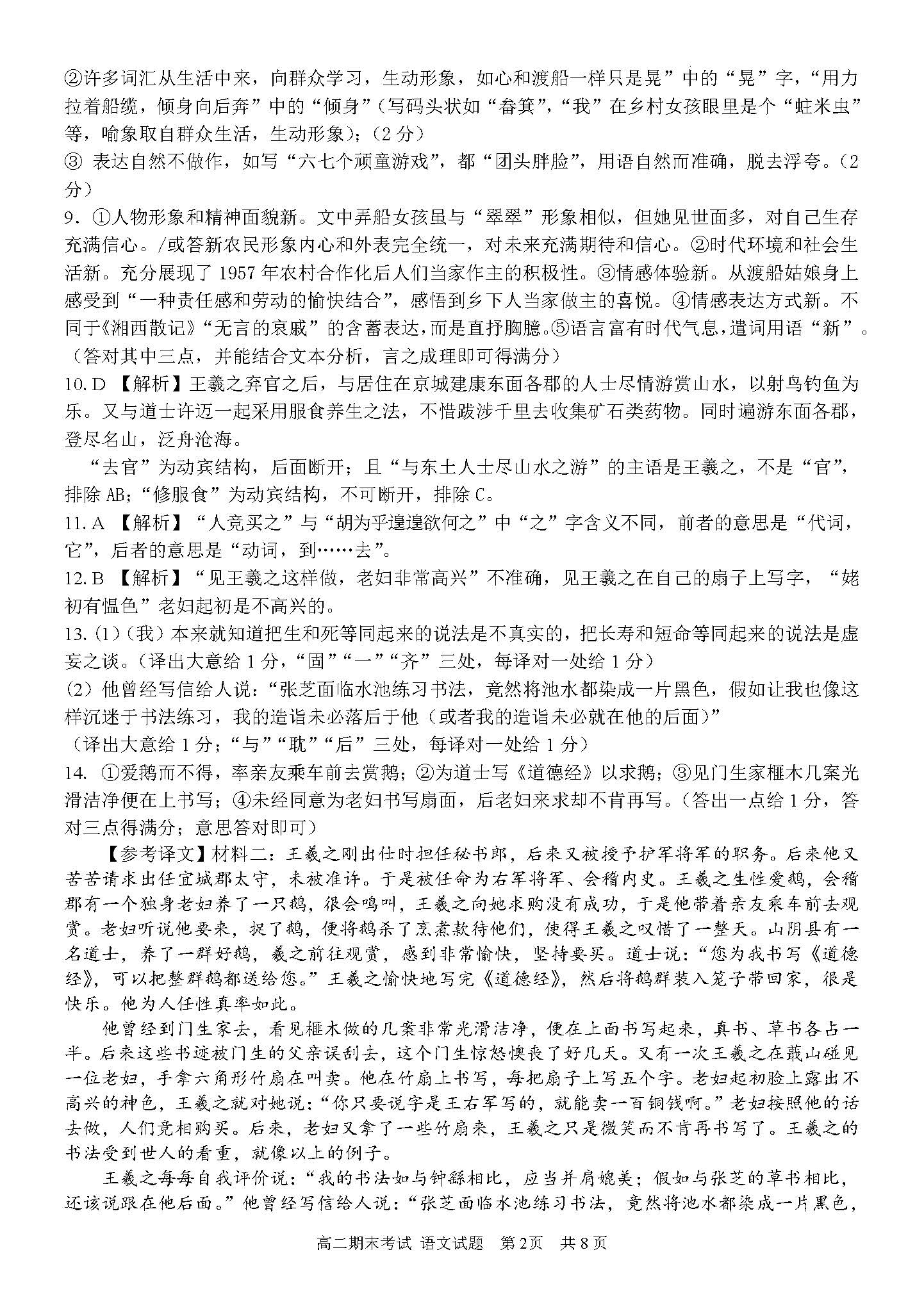 广西南宁三中2022-2023学年高二下学期期末考试语文答案