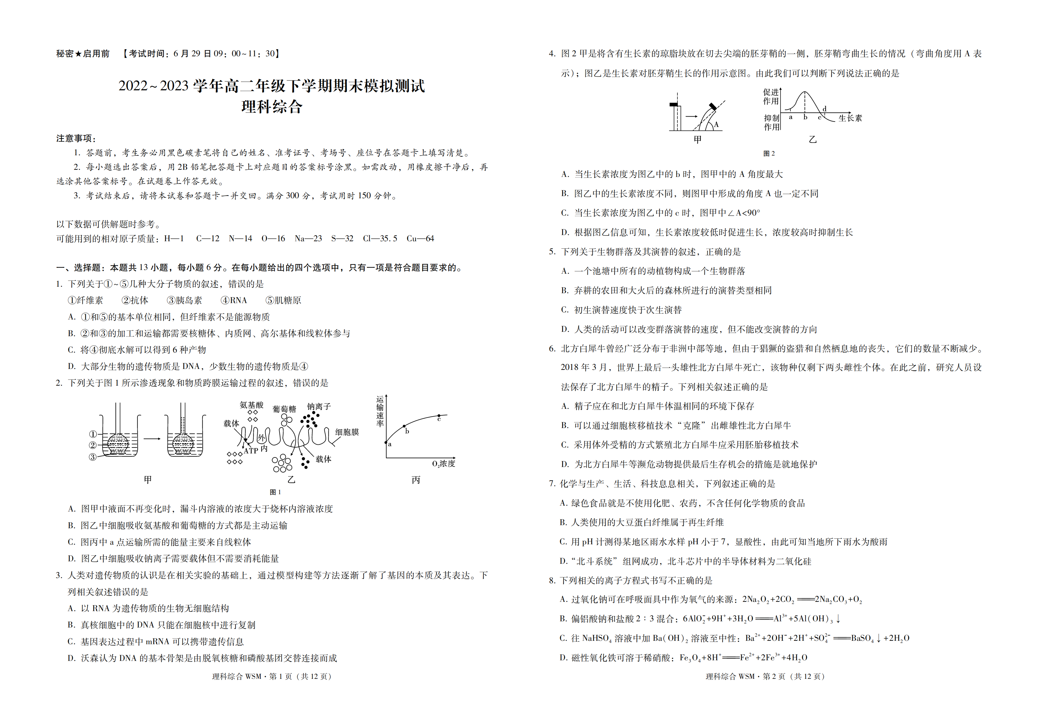 云南保山2023高二下学期期末考试已经结束,自主选拔在线团队同步整理云南保山2023高二下学期期末考试理综试题,供大家参考。