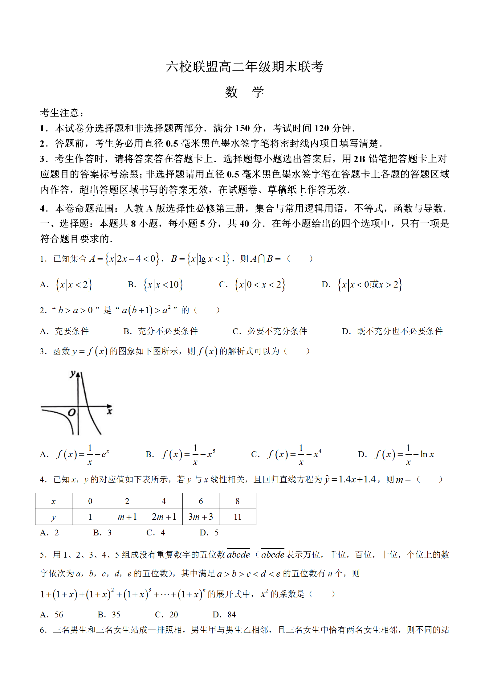 保定六校联盟2023高二年级期末考试数学试题