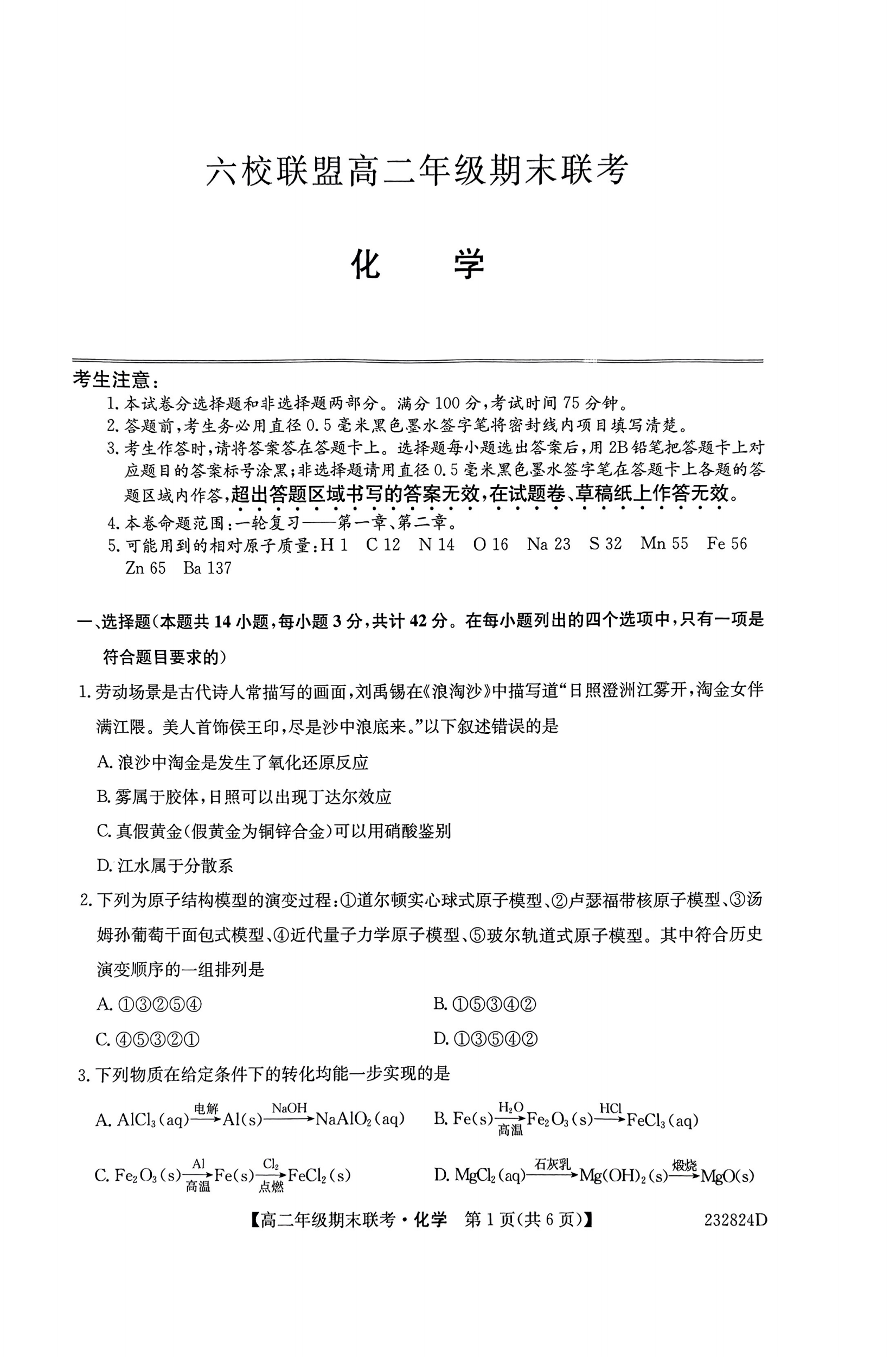 保定六校联盟2023高二年级期末考试已经结束,自主选拔在线团队同步保定六校联盟2023高二年级期末考试化学试题,供大家参考。