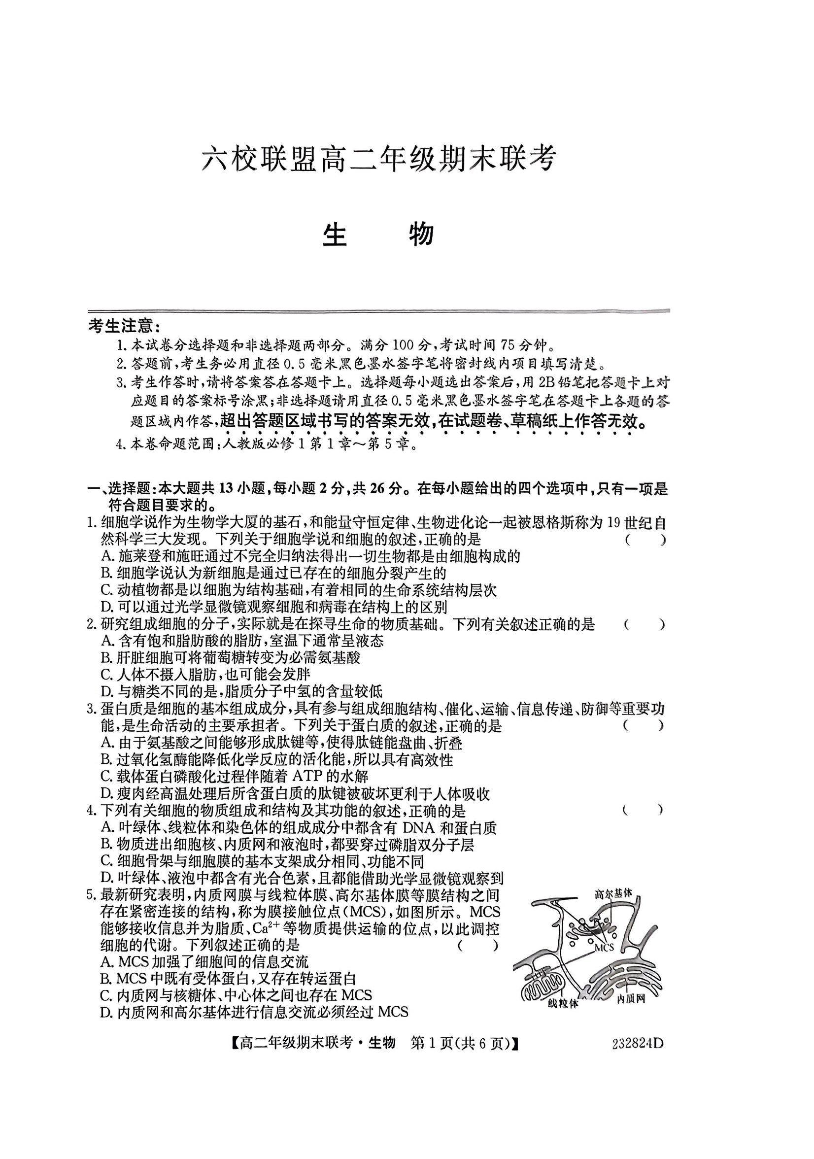 保定六校联盟2023高二年级期末考试顺利结束!自主选拔在线团队同步整理了保定六校联盟2023高二年级期末考试生物试题,供大家下载!