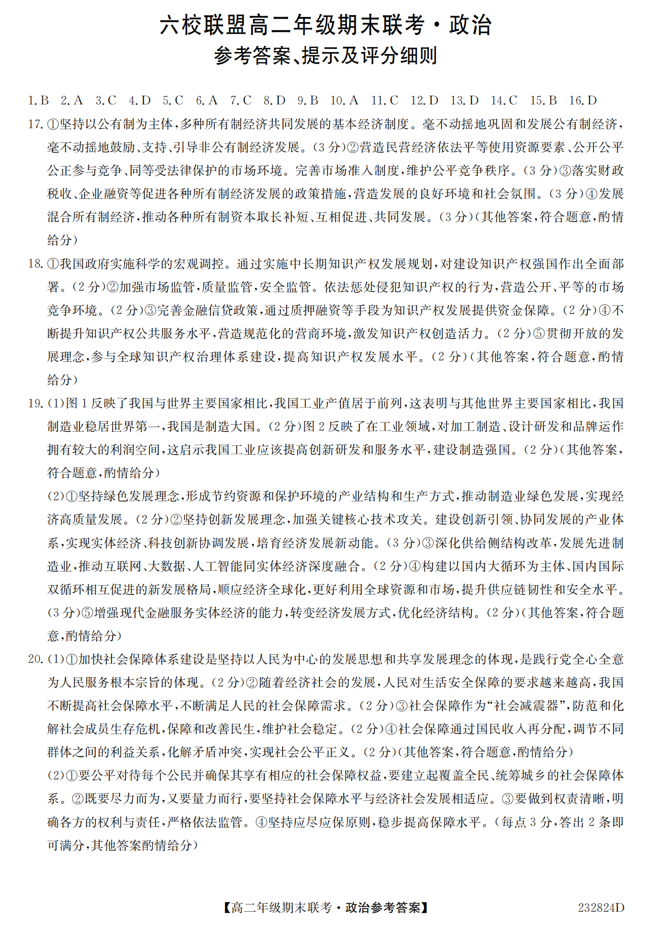 保定六校联盟2023高二年级期末考试顺利结束!自主选拔在线团队同步整理了保定六校联盟2023高二年级期末考试政治试题答案,供大家下载!