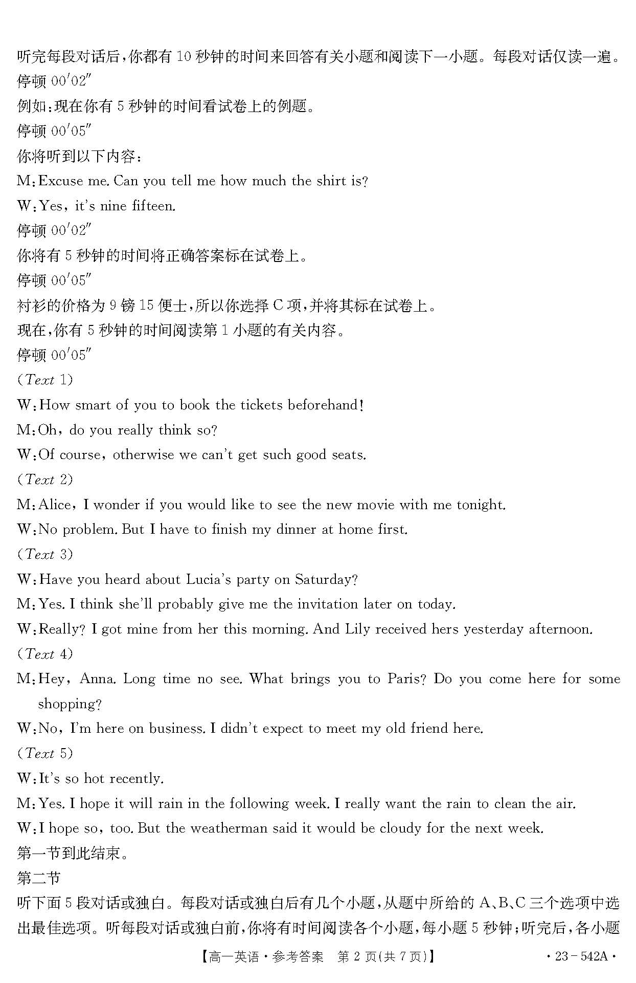 金太阳河北省承德市2023学年高一下期末考试(542A)英语答案