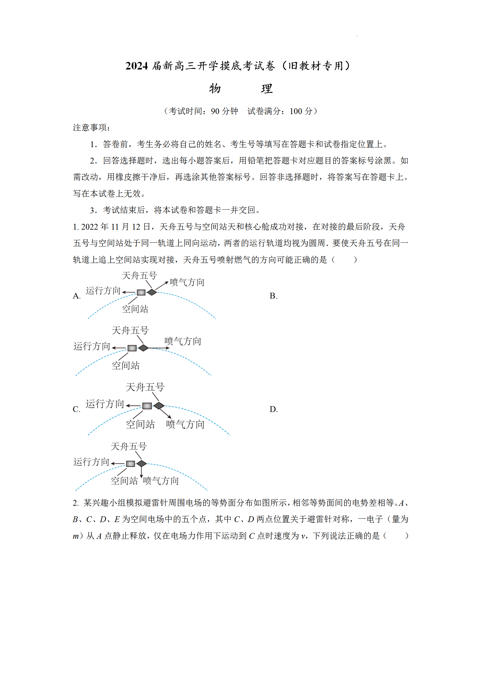 2024届高三全国通用旧教材开学摸底考试题已出,自主选拔在线团队同步更新2024届高三全国通用旧教材开学摸底考物理试题,供大家下载练习。