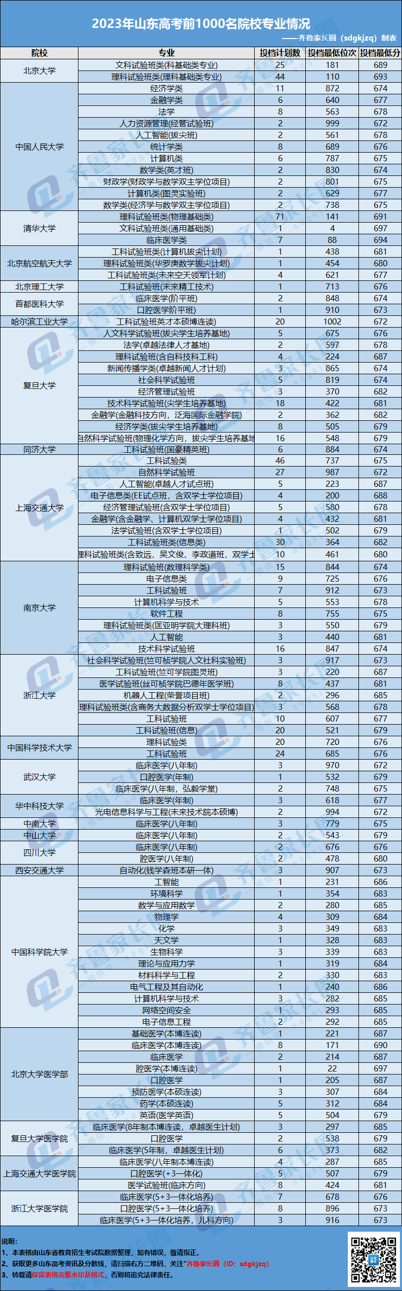 2022-2023年山东高考前1000名录取情况