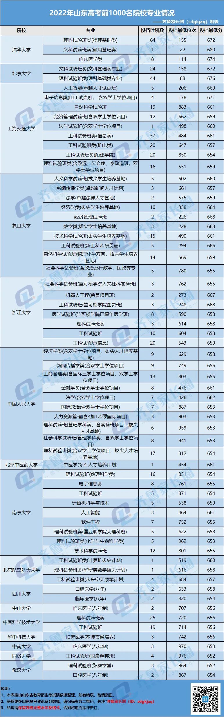 说明:上表数据仅是最低投档位次,全省前1000名中,除高考统招外,还有通过强基、综评等多种升学方式录取。