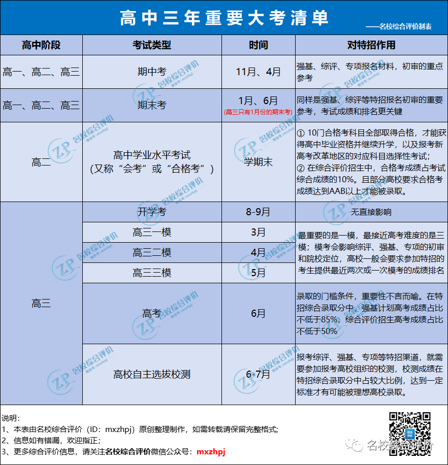 首先,我们概览一下高中三年最重要的历次大考,这些大考不仅是对每个阶段学习成果的检验,在综评、强基、专项等的报名初审阶段中也起到至关重要的作用。因此,各位高中生及家长务必重视,认真对待每次大考。