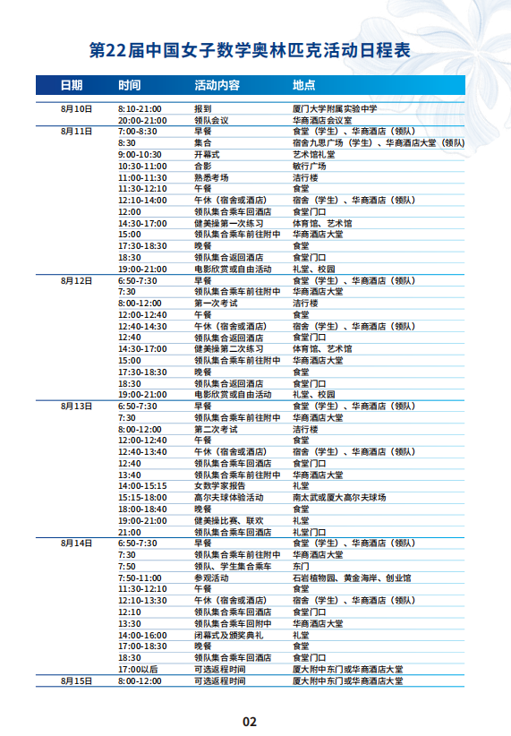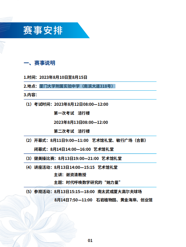 2023年第22届中国女子数学奥林匹克于2023年8月10日至8月15日举办在厦门大学附属实验中学(南滨大道318号),具体赛事安排和自主选拔在线团队一起来了解一下吧!