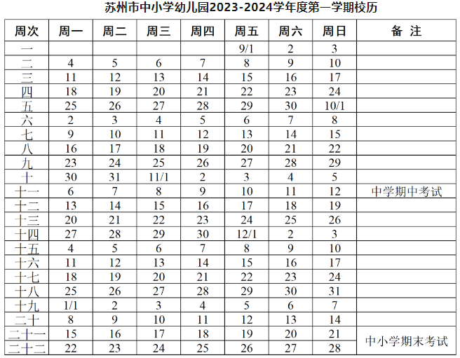 (1)2023-2024学年度第一学期苏州市中小学幼儿园均于2023年9月1日开学报到,9月4日起开始上课。