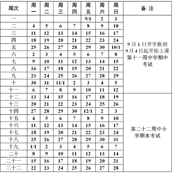 (4)各校可根据实际工作需要对期末考试时间作适当调整。