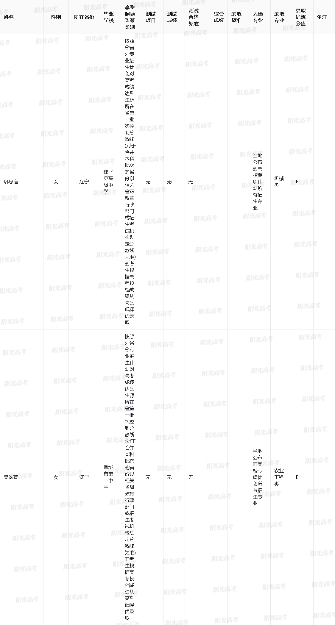 山东专项招录名单