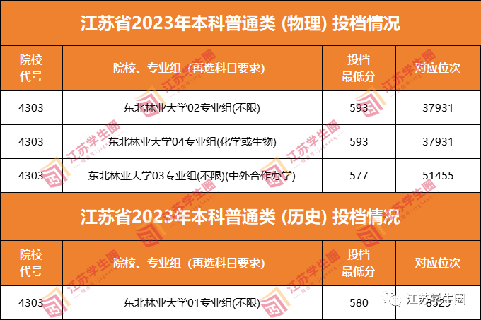 2023年东北林业大学在江苏各专业录取分: