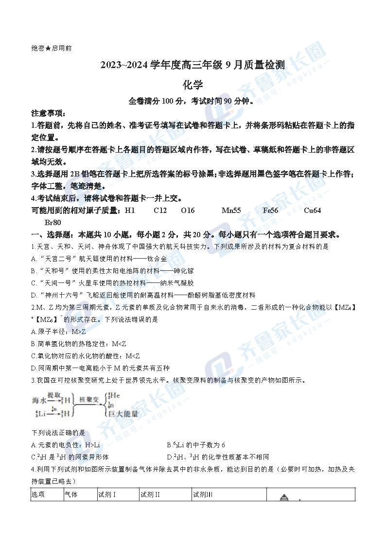 山东省金科大联考2024届高三9月质量检测已开考,由于本次考试试题质量高,参考价值大,齐鲁家长圈将同步更新相关试题及参考答案,供大家下载练习。