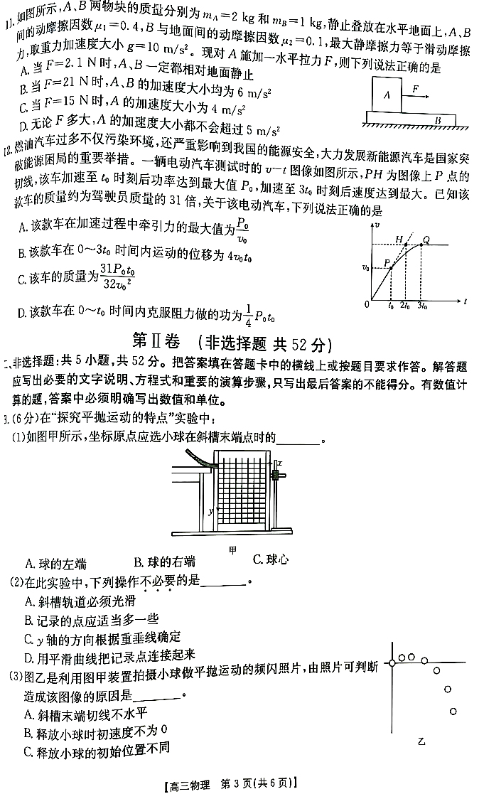 2024届河南金太阳24-31C高三一轮复习阶段性检测三物理试题
