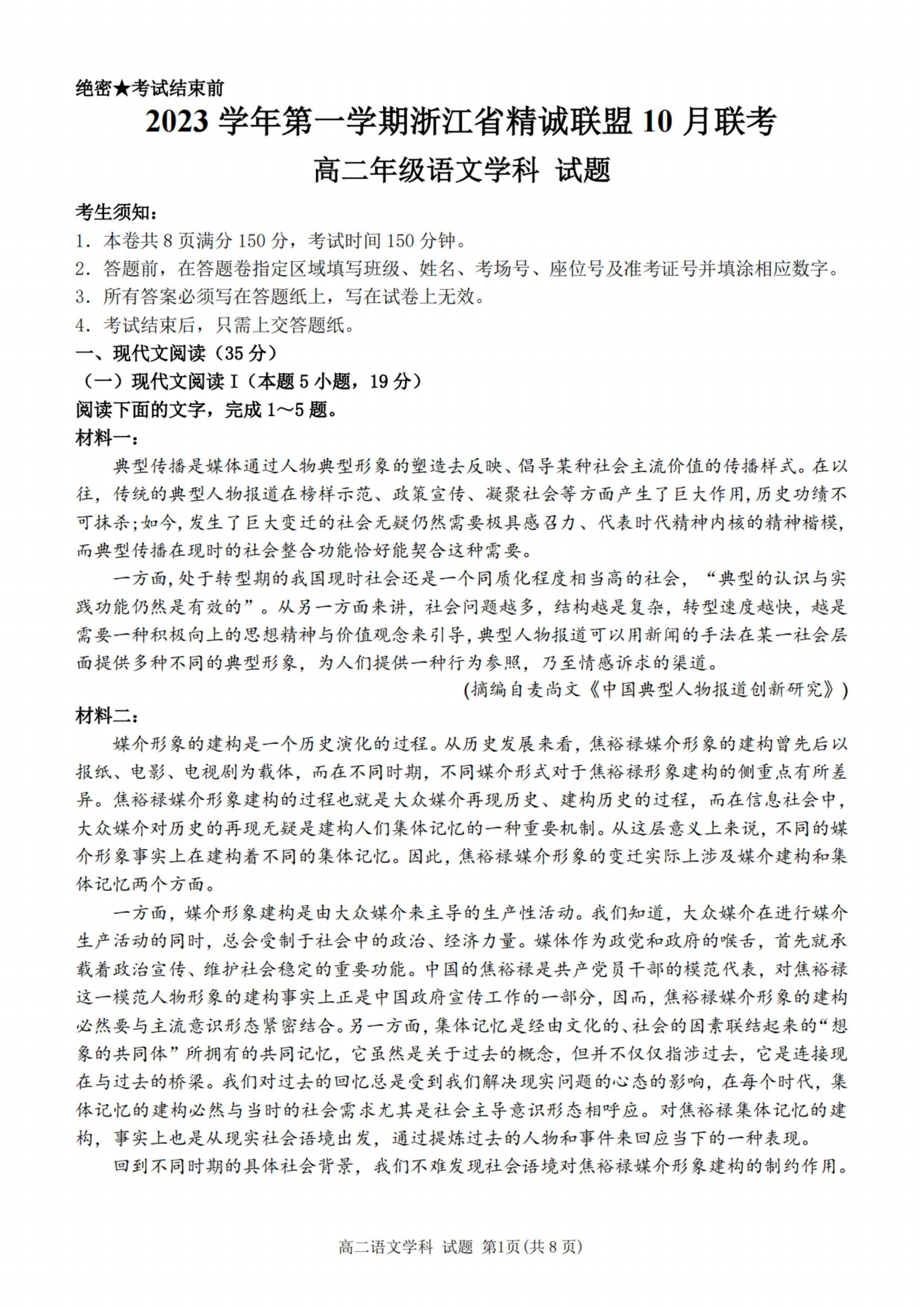 2024届浙江省精诚联盟高二10月联考于近期开考,为方便大家巩固练习,自主选拔在线浙江新高考团队同步整理了2024届浙江省精诚联盟高二10月联考语文试题及答案,供大家下载学习。