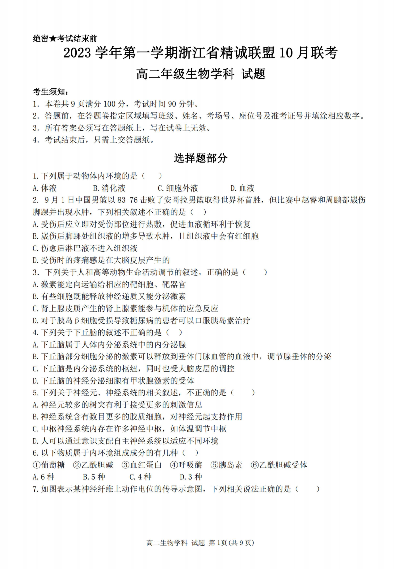2024届浙江省精诚联盟高二10月联考于近期开考,为方便大家巩固练习,自主选拔在线浙江新高考团队同步整理了2024届浙江省精诚联盟高二10月联考生物试题及答案,供大家下载学习。2024届浙江省精诚联盟高二10月联考于近期开考,为方便大家巩固练习,自主选拔在线浙江新高考团队同步整理了2024届浙江省精诚联盟高二10月联考生物试题及答案,供大家下载学习。